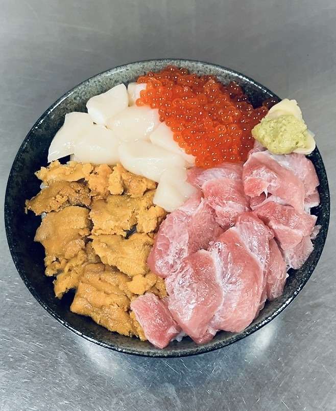 | 天然まぐろの大トロ・生うに・プチプチいくら・ホタテ貝柱 | |||||